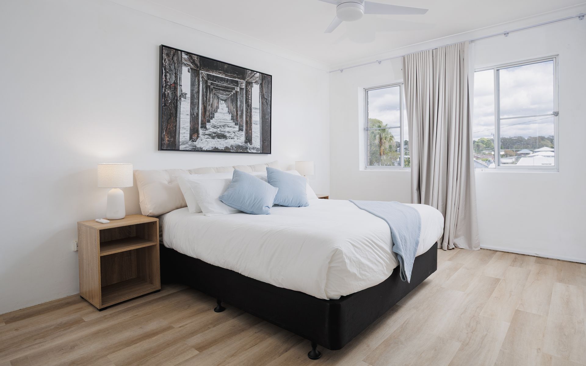 Arrive, unwind, and be awed by the endless sky above your private balcony, or retire inside to enjoy the cooling influence of ceiling fans and modern decor. The property is located within a serene neighbourhood, just a stone's throw away from the ocean - where you might get lucky and spot a whale or two!