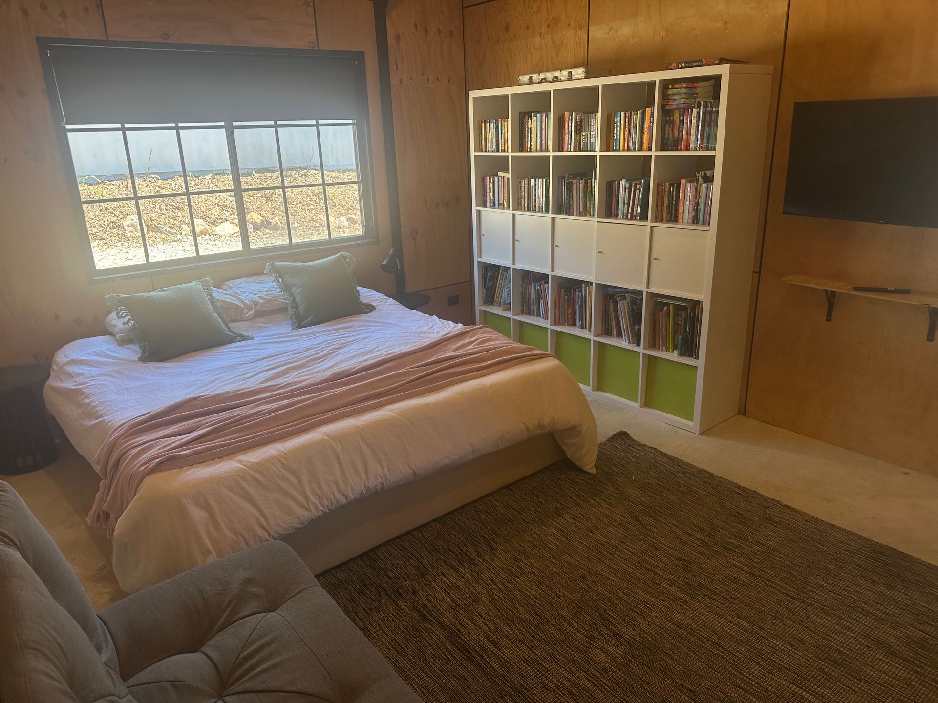 Inside the main dwelling, you’ll find two beautifully appointed bedrooms, one with a queen bed, and another a king size bed with a double fold out couch, perfect for families or groups. A third bedroom with a queen-size bed sits in a separate dwelling, offering extra privacy and a peaceful retreat for couples or guests seeking their own space.