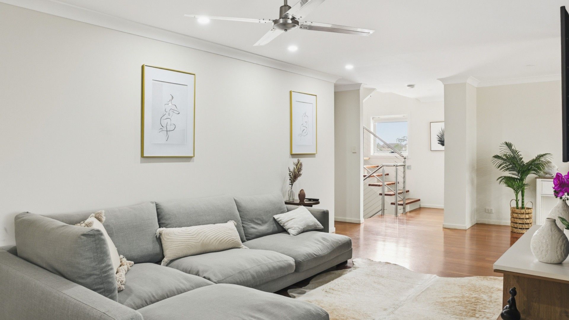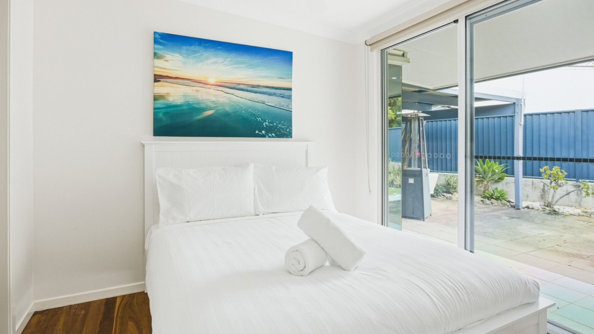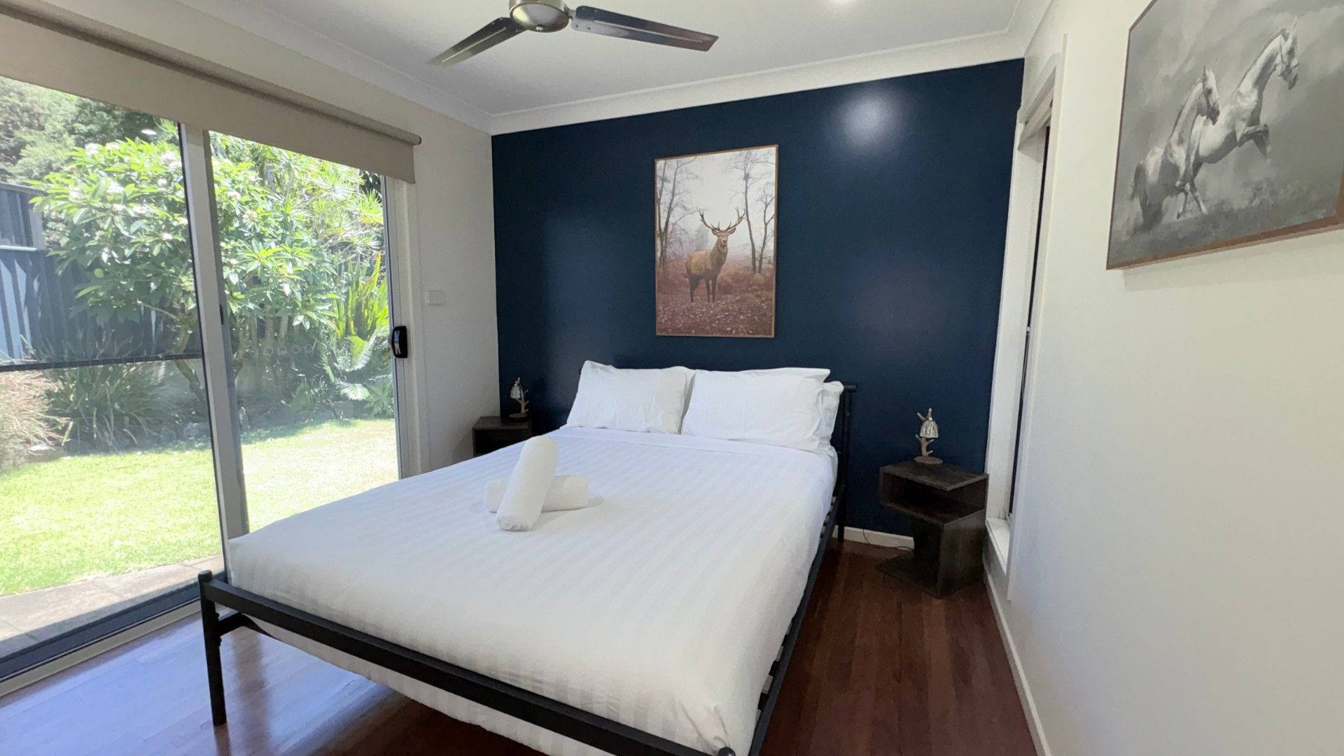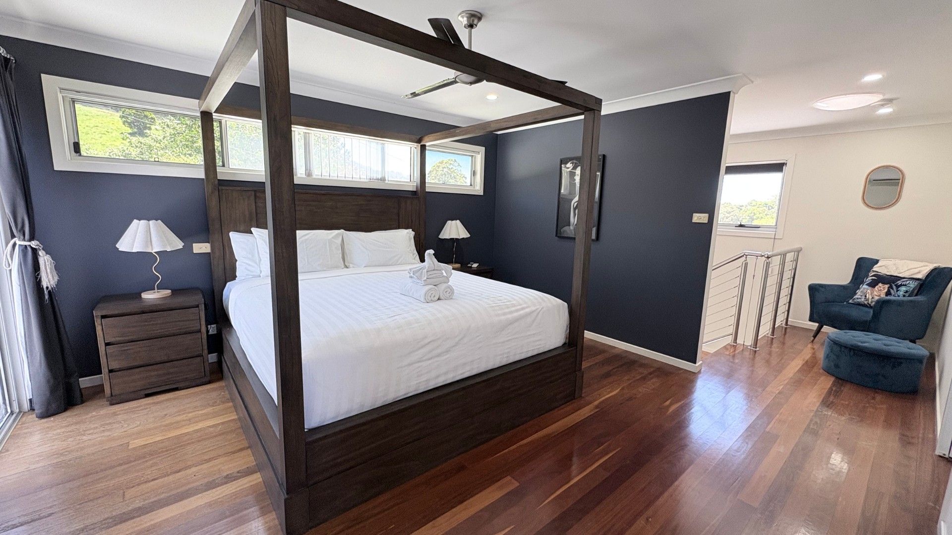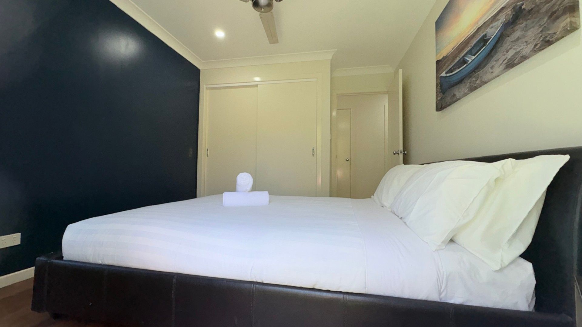 The home accommodates up to 8 guests across four bedrooms, plus a dedicated study. The entire top floor is designed as a private retreat, featuring the master bedroom with a king bed, a modern ensuite with shower, and an expansive walk-in robe, an ideal space to unwind and enjoy complete privacy.