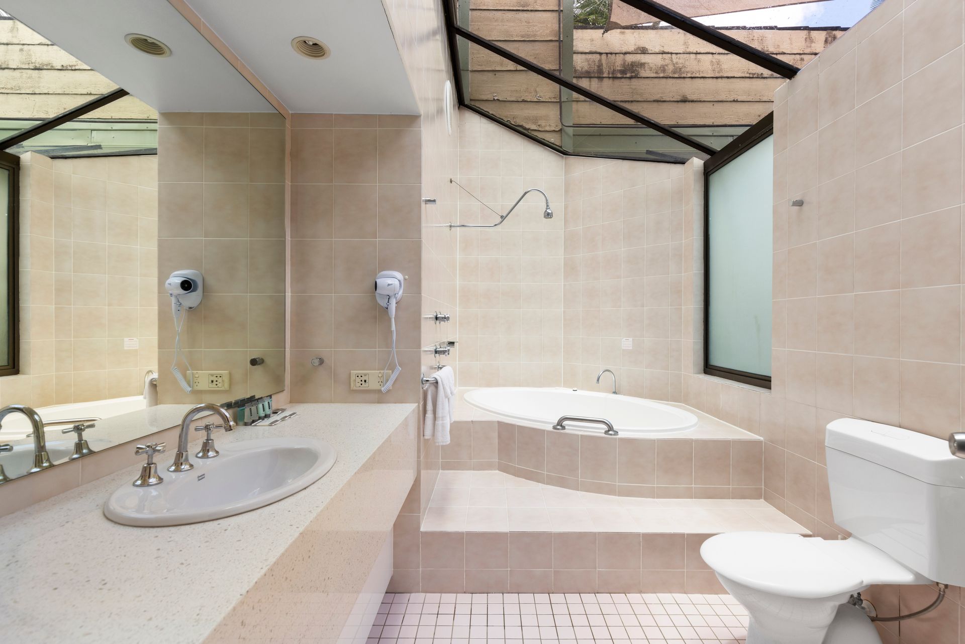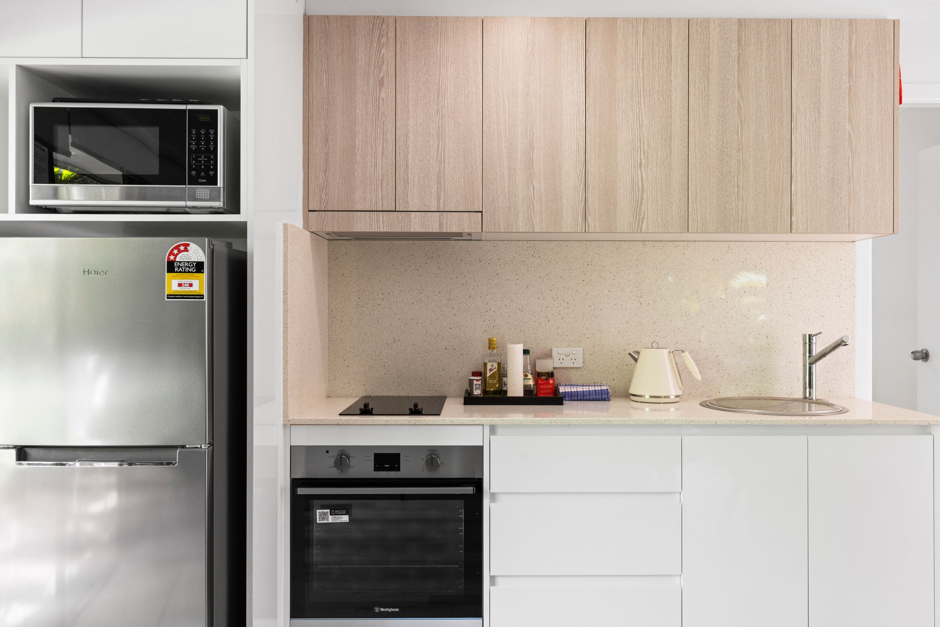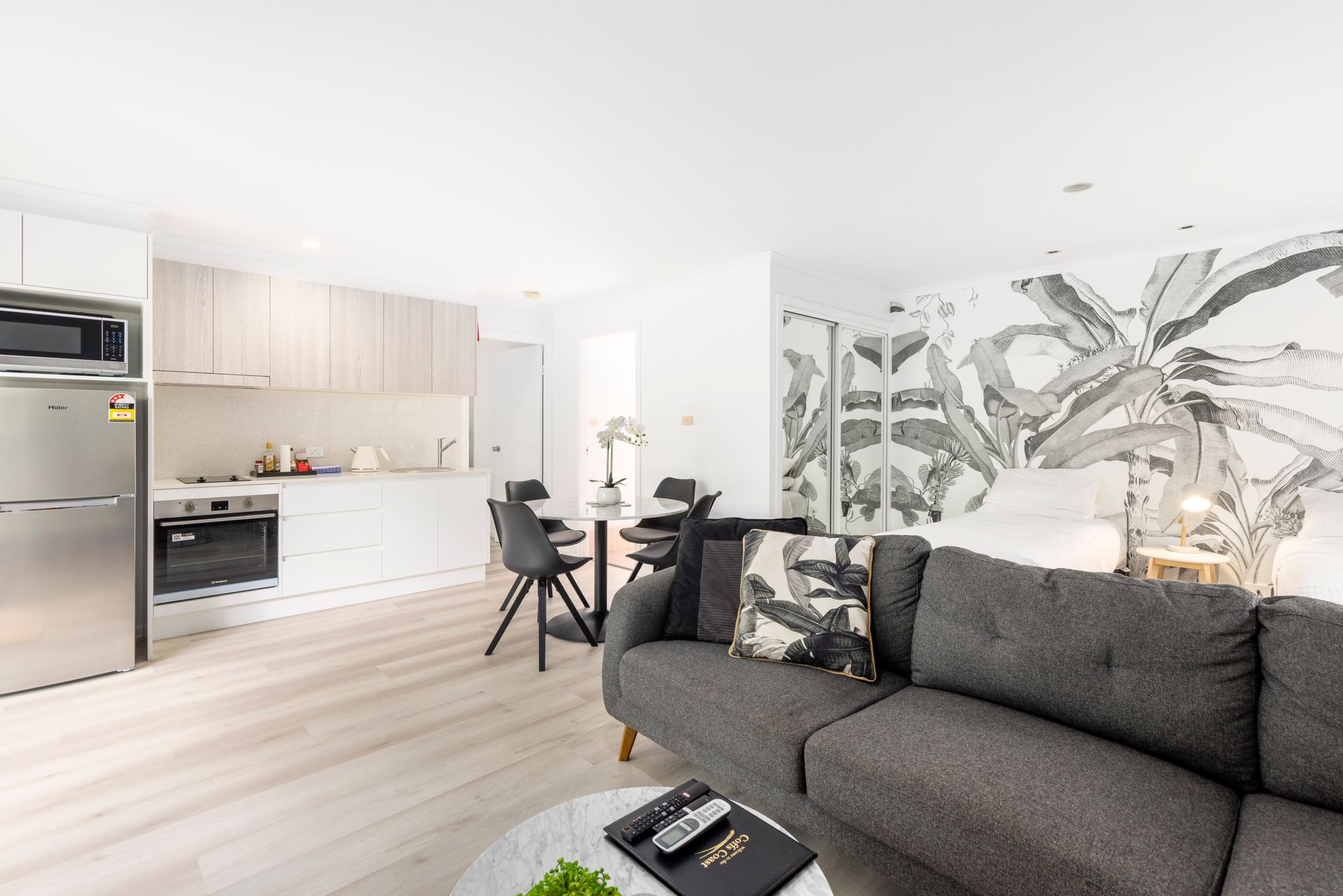 This beautifully appointed apartment can comfortably accommodate up to 4 guests. Bedroom 1 breathes harmony, with a luxurious queen bed, and 2 cozy king singles in the sleeaping area near the lounge room. Quality linen, air conditioning, heating and ceiling fans ensure your utmost comfort throughout your stay. The clean, modern bathroom showcases a combination shower/tub for maximum flexibility.